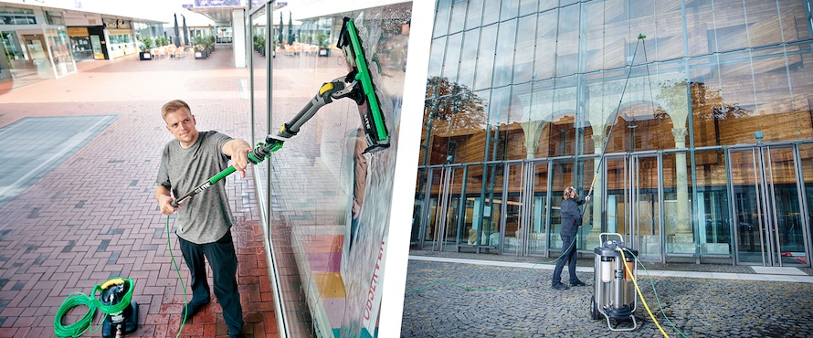 Der moderne Glasreiniger setzt auf Reinstwasser zur Fensterreigung, mit passenden Teleskopstangen sind Arbeitshöhen bis zu 20m machbar. Umkehrosmose oder Harzfilter, verschiedene Größen sind lieferbar.