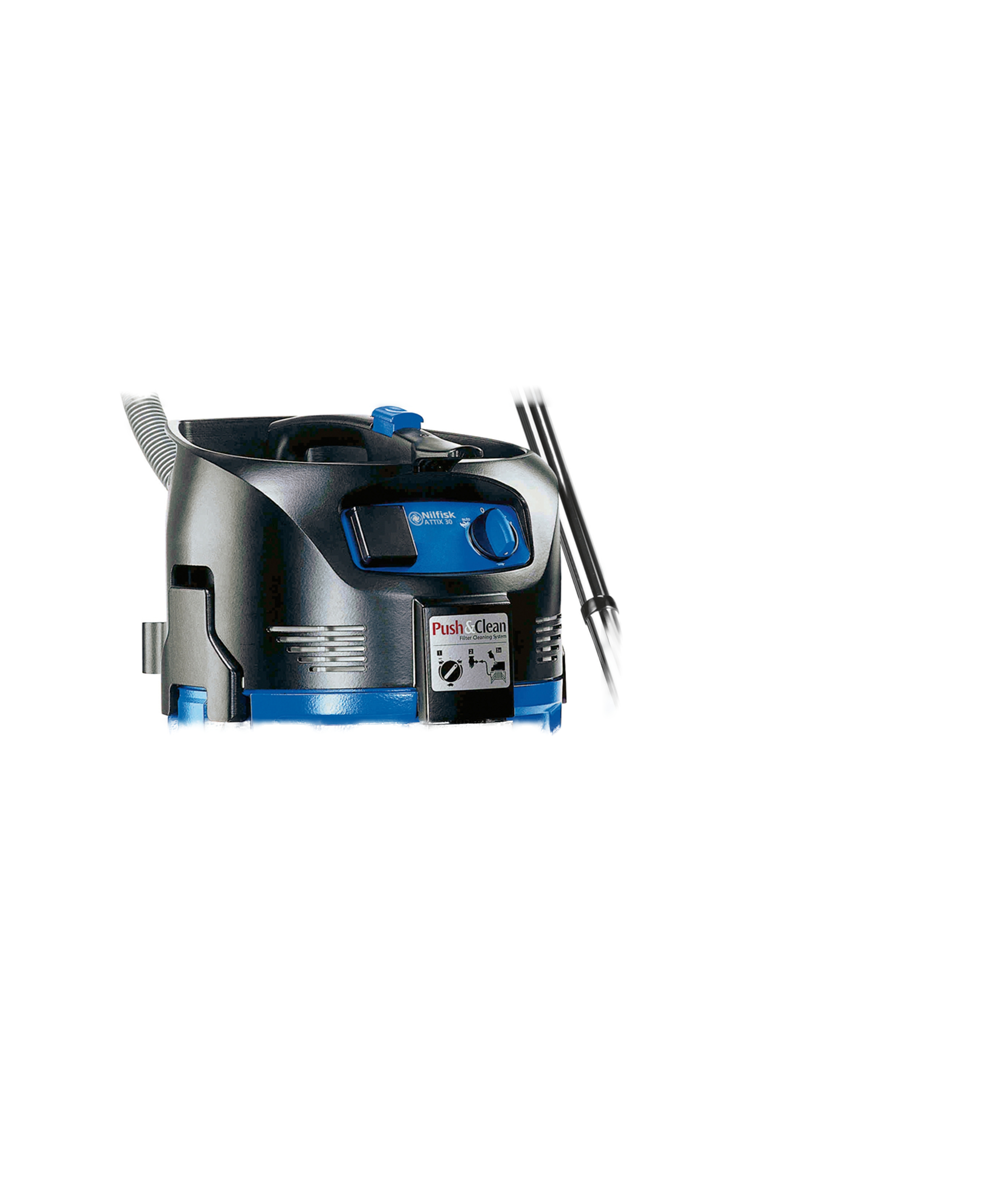 Bei laufenden Motor den Schlauch zu halten und den blauen Push&Clean Knopf mehrere male drücken. Die Abluft wird hierbei von innen nach aussen durch den Filter gedrückt und Feinstaub aus dem Filtermaterial in den Schmutzbehälter geblasen.