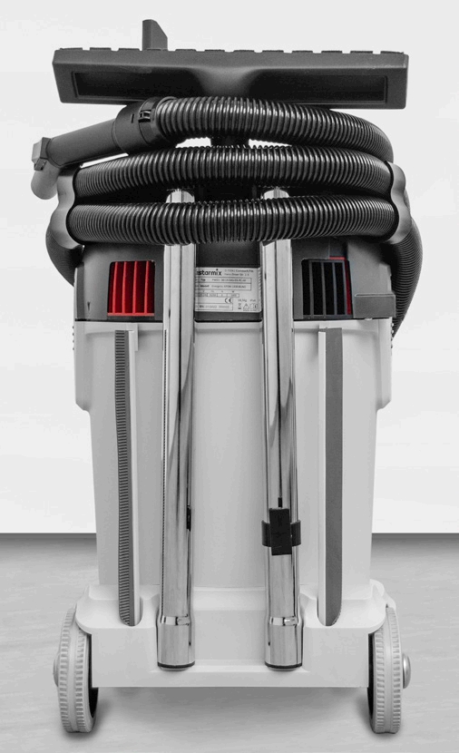 - Ordentliche Verstaumöglichkeit für das gesamte Zubehör und Saugschlauch am Gerät.