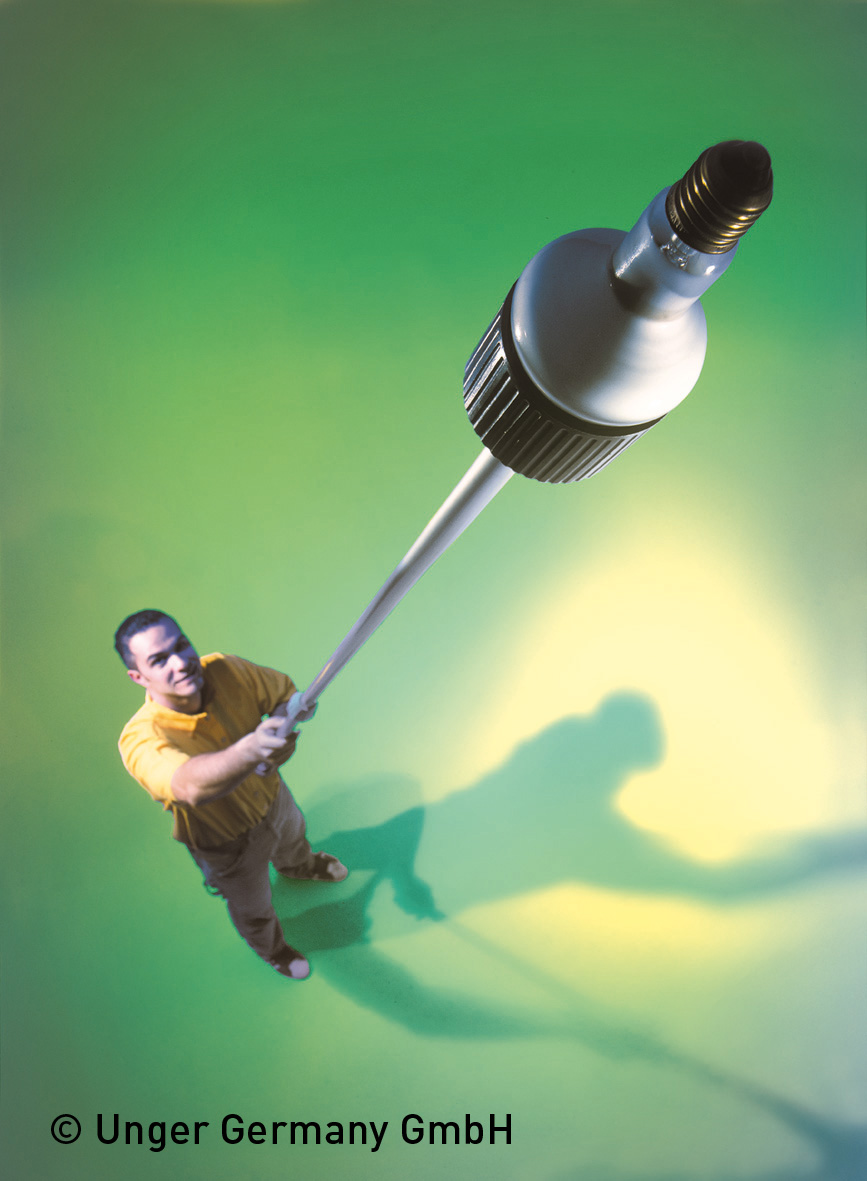 Zum auswechseln von flachen Glühbirnen in großer Höhe. Mit Saugnäpfen