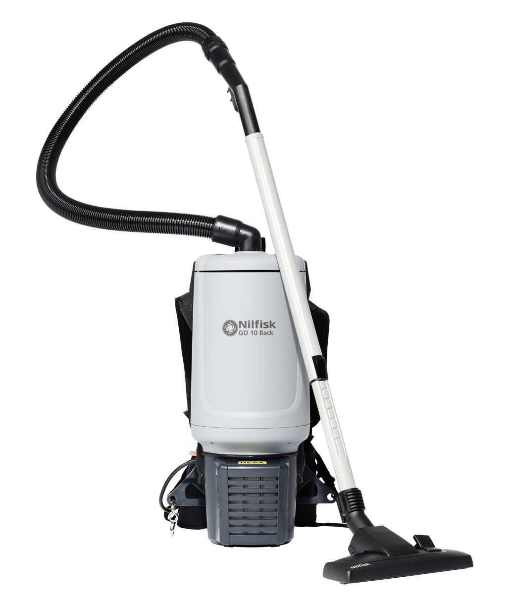 Der Rückentragesauger Nilfisk GD 10 erfüllt viele Anforderungen: Er ist möglichst leicht bei gleichzeitig optimaler Gewichtsverteilung und möglichst ruhig bei sehr guter Saugleistung. Der Gd5 Rucksacksauger glänzt mit ausgeglichener Balance und einer leistungsstarken Saugturbine. Das Zubehör kann bequem vorne am Gürtel des Rückensaugers befestigt werden, dort befindet sich auch der Aus/Ein Schalter. Der Rückentragesauger ist optimal in beengten Platzverhältnissen z.B. Kino, Stadion, Bus und Bahn.