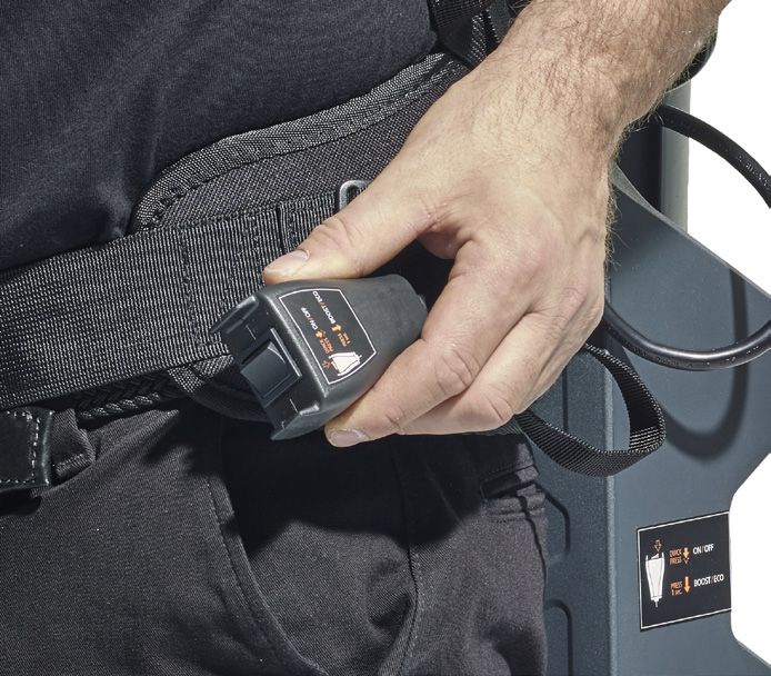 - Aus/Ein Schalter am Hüftgurt vom Tragegestell