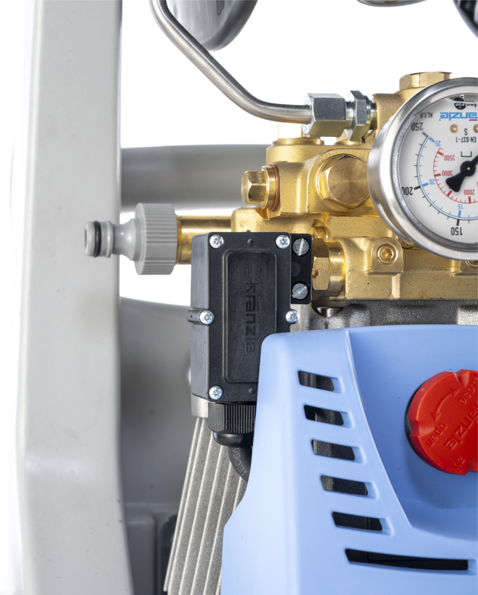 in Arbeitspausen schaltet der Hochdruckreiniger mit einer kurzen Verzögerung in den Standby Modus. Nach betätigen der Abschaltpistole ist sofort der volle Druck wieder da.