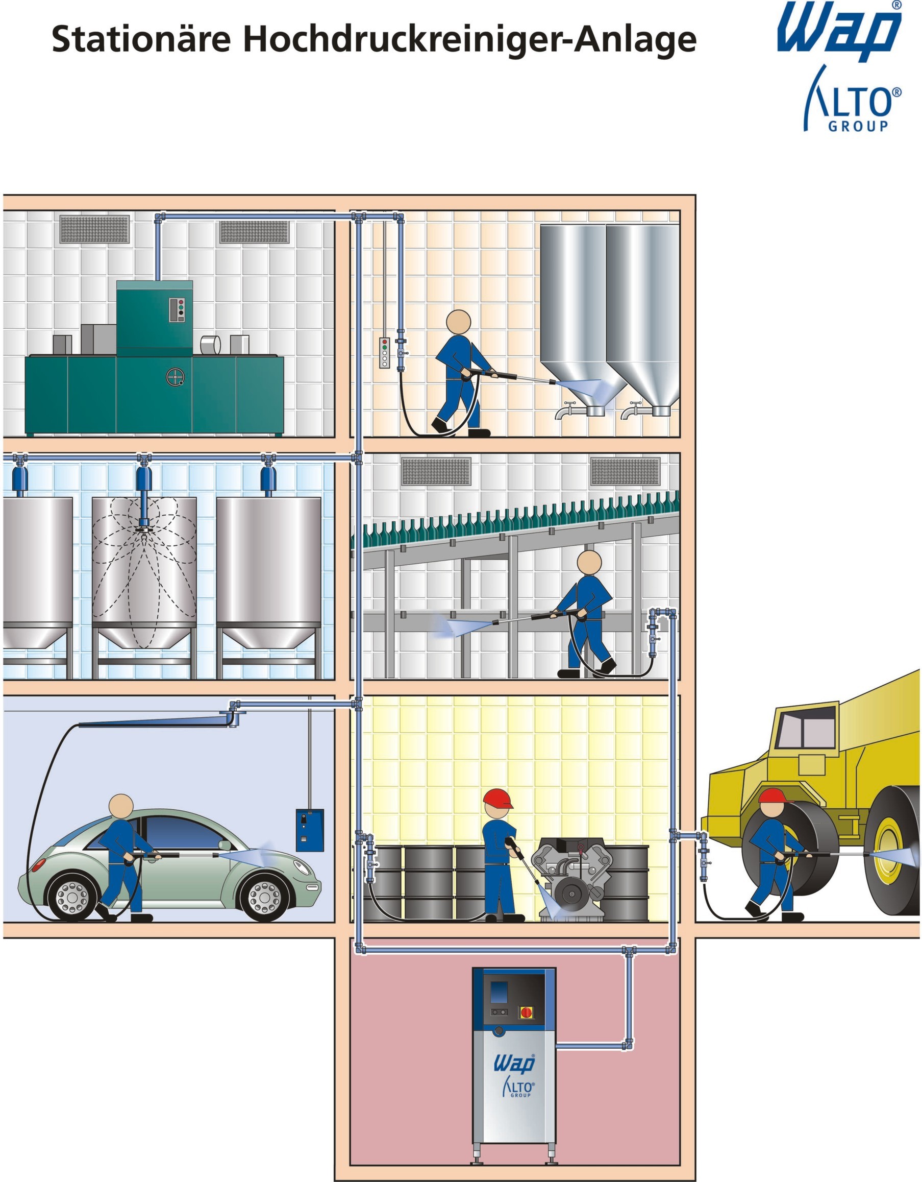 - Kleine stationäre Reinigungsanlage; Eine Maschine für mehrere Zapfstellen gewährleistet hohe Flexibilität