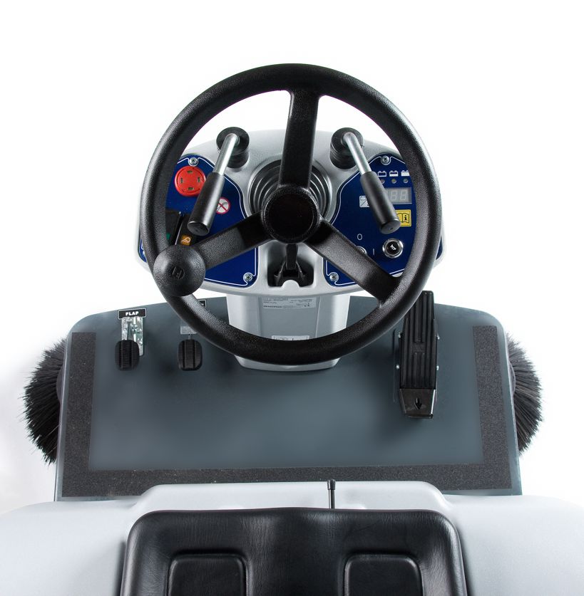 Die Aufsitzkehrmaschine SR1101 erfüllt alle Anforderungen an Produktivität und Wirtschaftlichkeit. Sie ist als Batterie- oder Benzinversion erhältlich. Besonderheit: die Batterieversion verfügt über eine lange Laufzeit für mehr Produktivität. Die Aufsitzkehrmaschine SR1101 ist kinderleicht und selbsterklärend zu bedienen. Sie verfügt über ein besonders robustes Design, welches auch harten Arbeitseinsätzen problemlos standhält. Dank des 70 Liter großen Kehrgutbehälters brauchen sie wenige Stopps zum Entleeren. Das umfangreiche, optionale Zubehör ermöglicht den vielseitigen und flexibelen Einsatz der Maschine, z.B. zur Teppichreinigung.