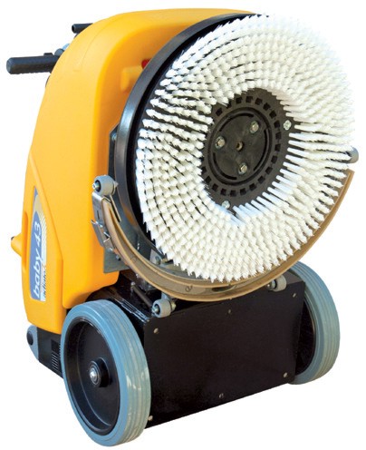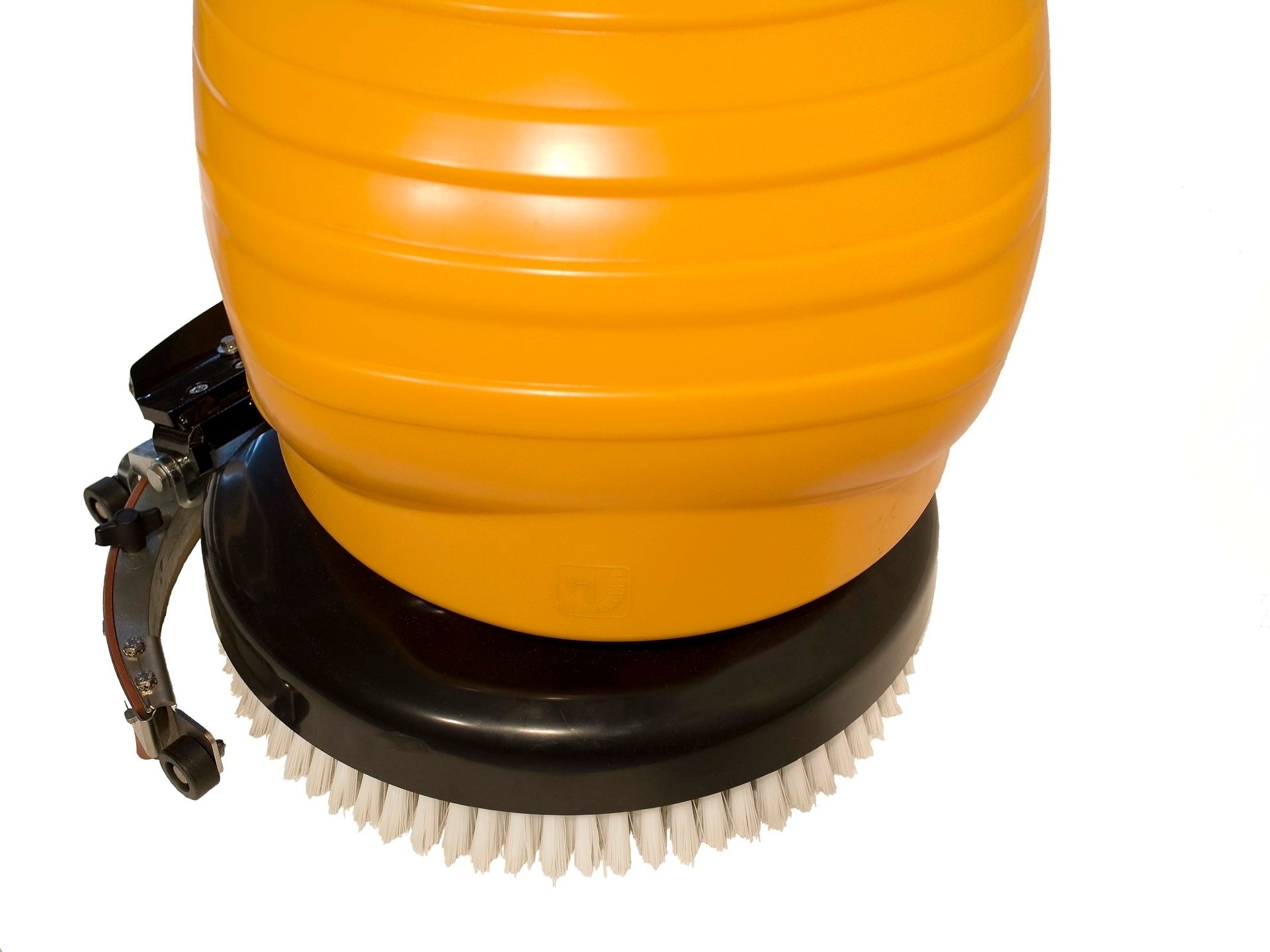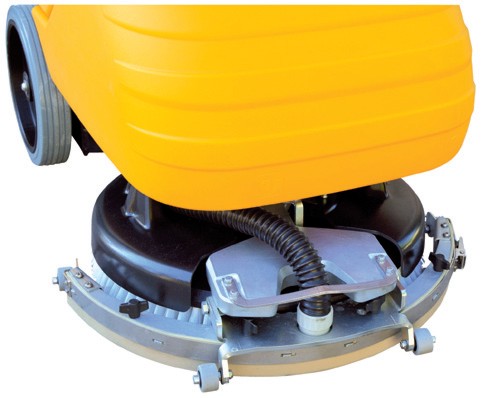 Ein besonderes Element dieser Scheuersaugmaschine ist der Saugfuß. Dieses System erlaubt die komplette Drehung des Saugfußes nach rechts und nach links, deshalb kann die Trocknung auch während der Rückwärtsfahrt vorgenommen werden. Der Führungsholm ist in der Höhe verstellbar und er kann zum Transport auf die Tanks umgelegt werden. Die Maschine kann hochkant aufgestellt werden und jeglicher Eingriff an der Bürste oder am Saugfuß ist wesentlich einfacher.