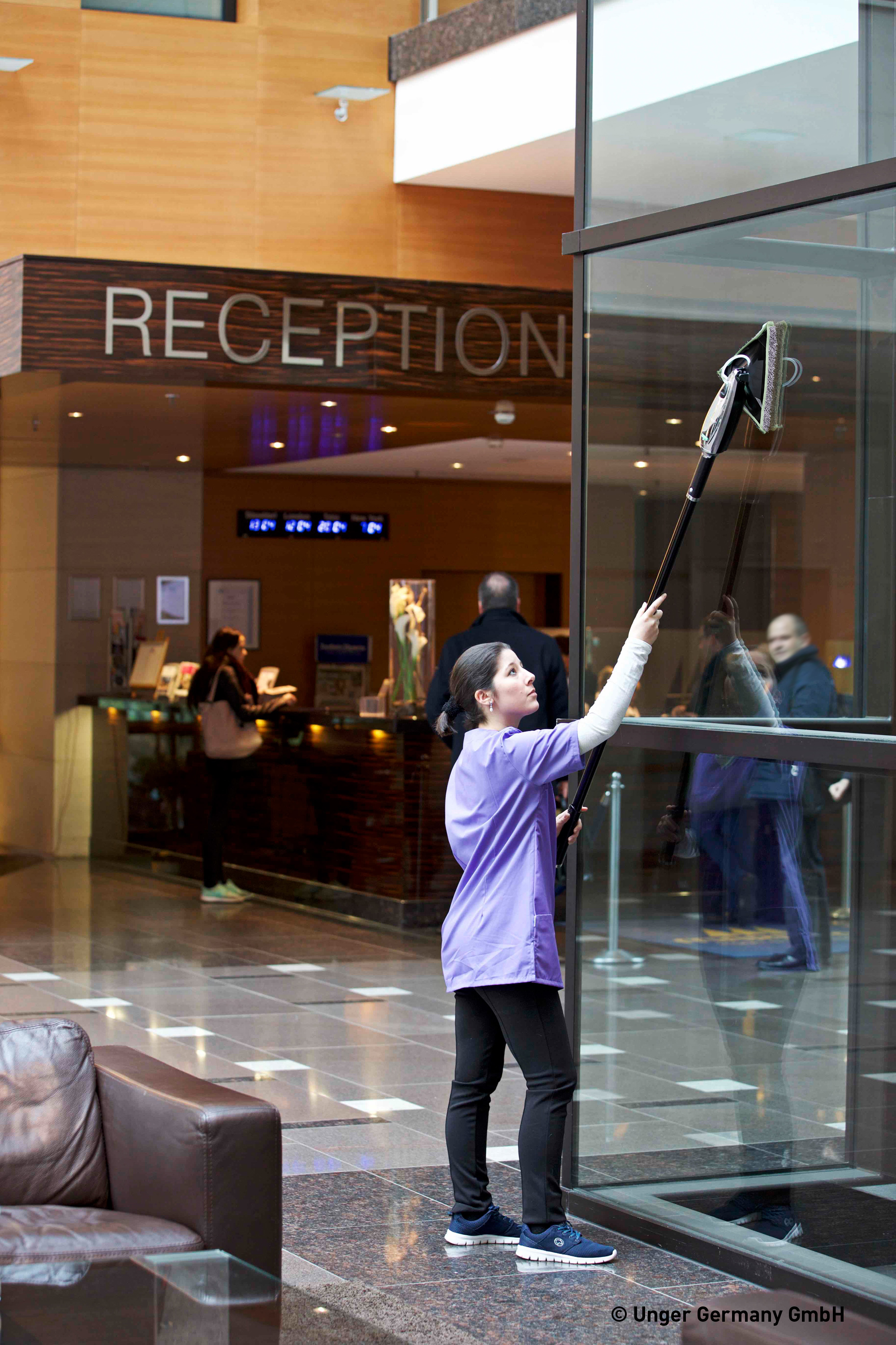 Der neue abnehmbare Tank kann mit jedem alkoholbasiertem Glas- und Oberflächenreiniger befüllt werden. Das senkt Kosten und die Umweltbelastung durch fehlende Einwegverpackungen. Reichweite mit einer 150 ml Füllung: bis zu 150m2