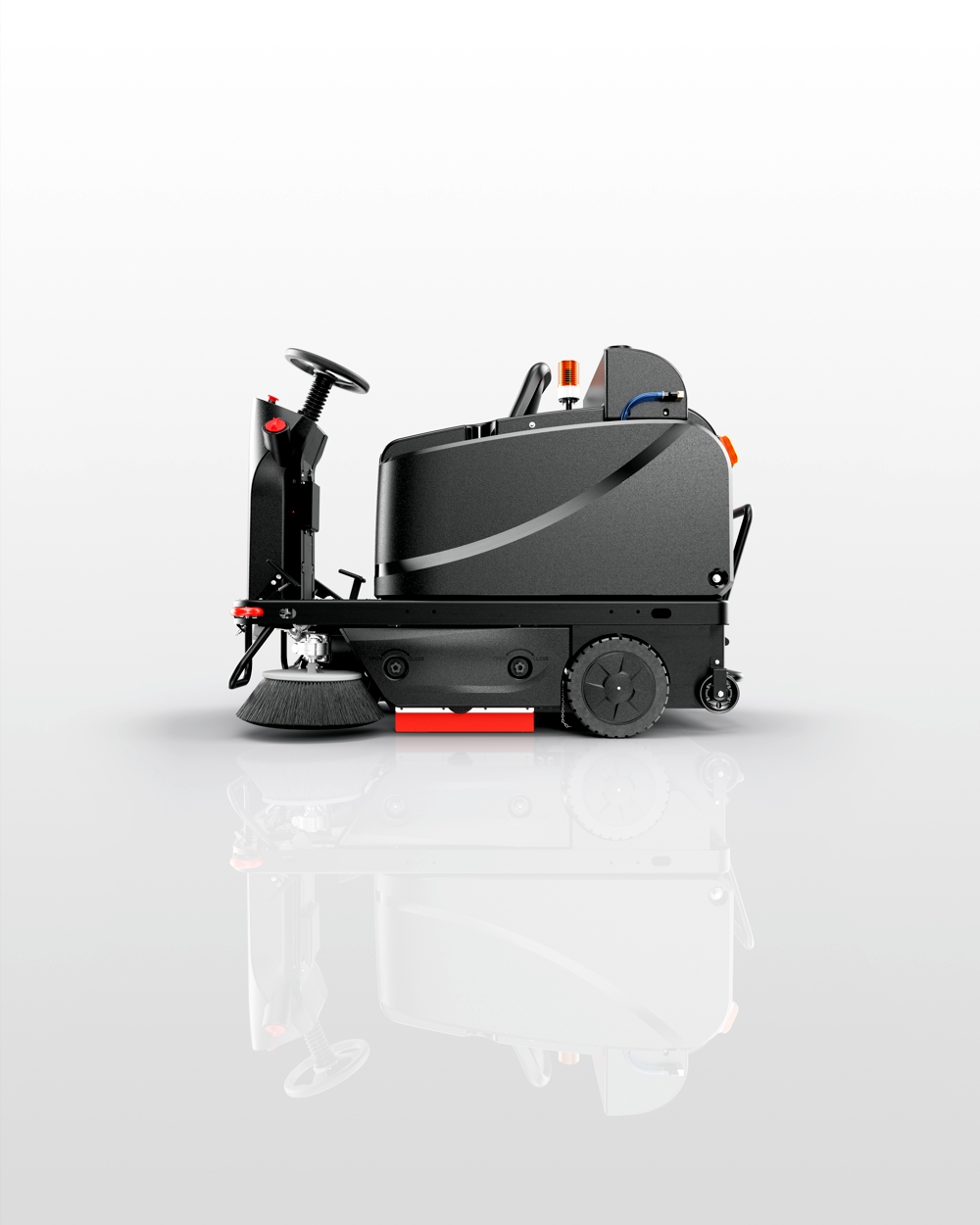 - Hohe Produktivität mit optimaler Staub- und Schmutzaufnahme sowie leistungsstarkem Hinterradantrieb auch an Steigungen (Steigfähigkeit im Arbeitsmodus 16 %);