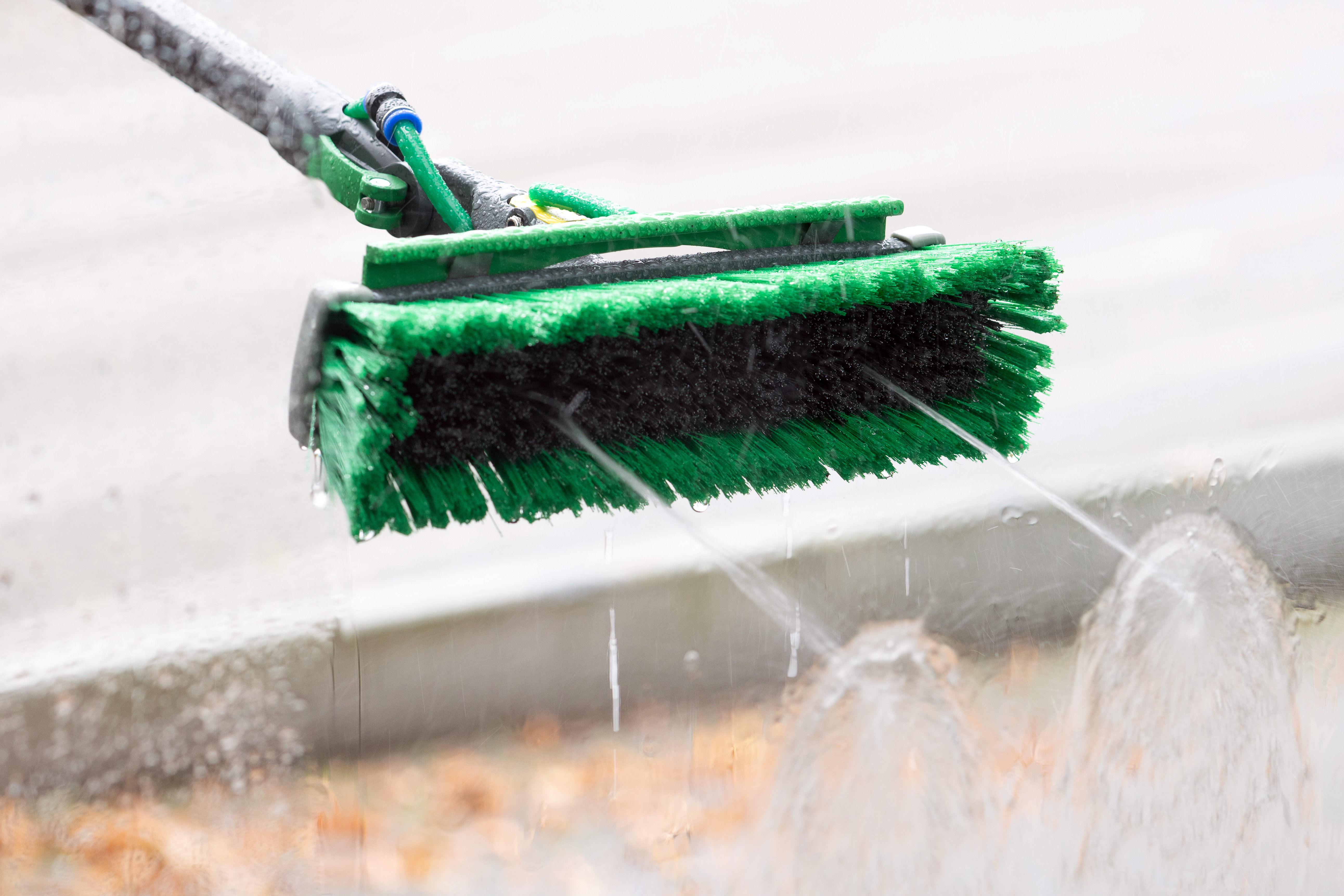 - Mit spezieller Spüldüsenleiste oberhalb der Bürste für kraftvolles Spülen